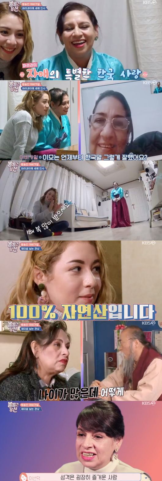 아비가일의 엄마는 한복을 입고 파라과이에 있는 언니와 영상통화를 했다. 파라과이에 있는 언니도 한국말을 유창하게 구사해 놀라움을 전했다. 이 언니는 "어릴 때 한국사람이 되고 싶었다"며 남다른 한국사랑을 전했다. 이어 아비가일의 엄마는 한복을 입고 영상으로 새배를 했다.