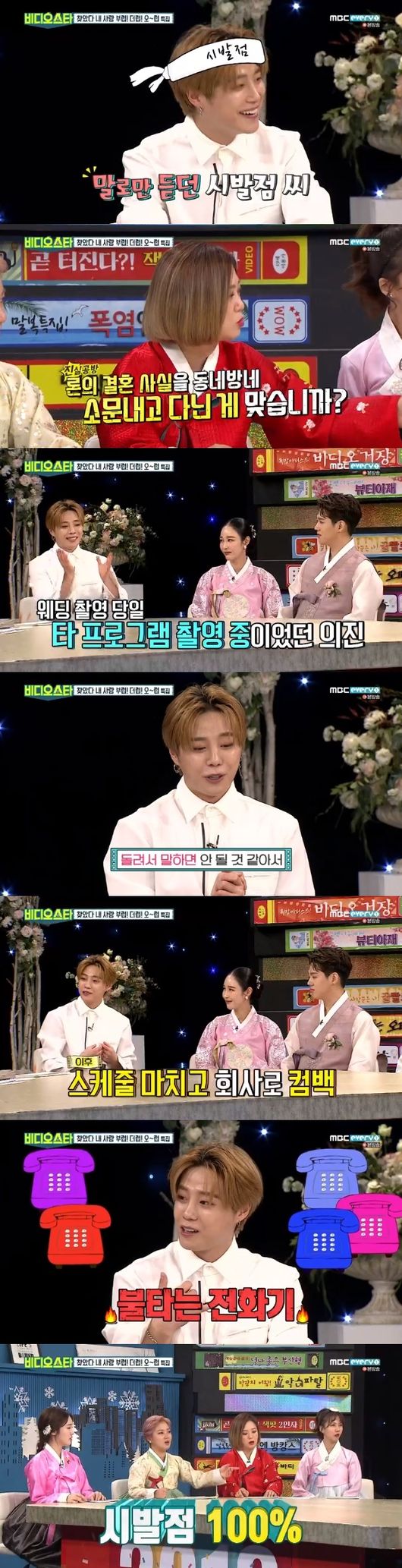 론은 "멤버들과 웨딩 촬영을 하기로 했는데, 의진 형이 방송 촬영이 잡혔다. 작가분한테 '멤버가 웨딩 촬영을 한다'고 이렇게 얘기했다. 스케줄을 빼달라고 했던 게 시발점인 것 같다. 의진 형이 범인이다"고 밝혔다.