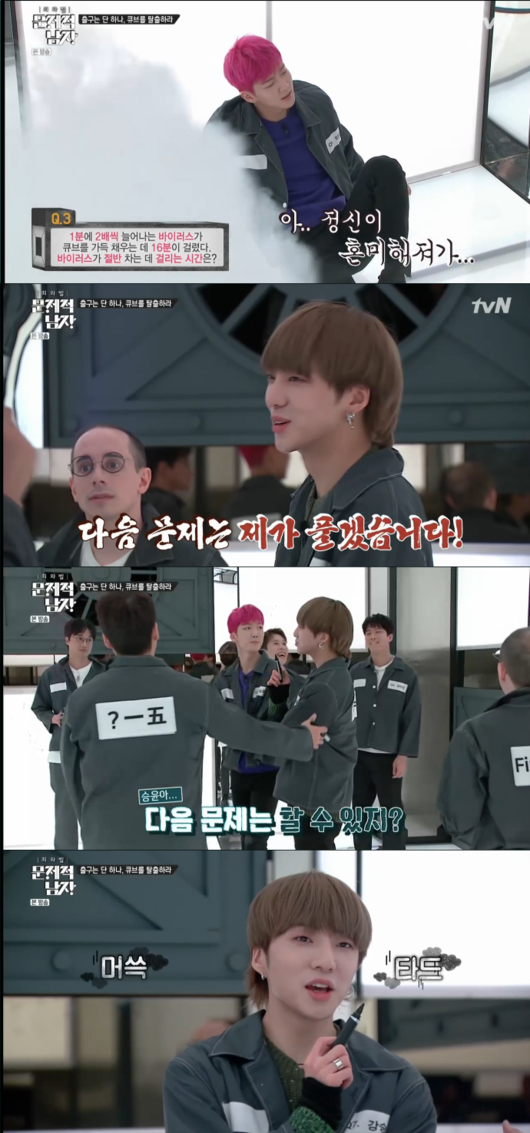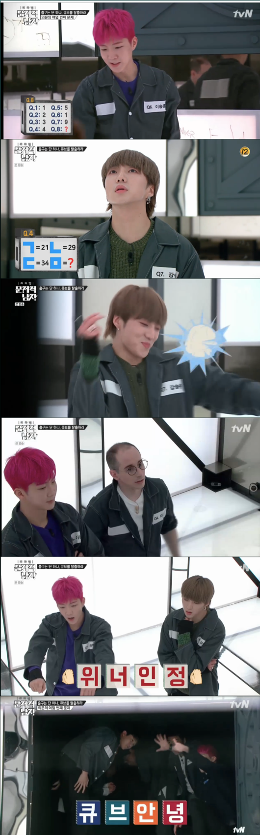 멤버들은 주어진 문제를 모두 풀어야만 탈출할 수 있는 큐브 세트에 갇히게 됐다. 이어 큐브 세트에 강승윤과 이승훈이 등장해 멤버들을 깜짝 놀라게 만들었다.