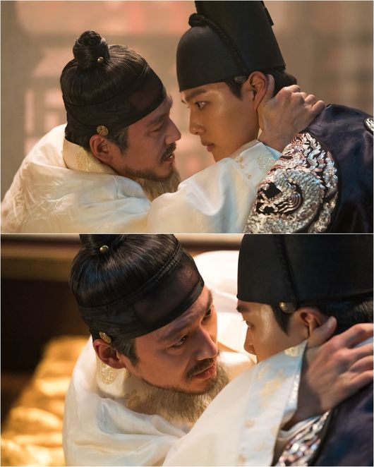 이 가운데 공개된 스틸 속에는 장혁-여진구 부자(父子)의 투샷이 담겨 있다. 장혁과 여진구는 채 한 뼘도 되지 않는 거리를 사이에 두고 서로를 응시하고 있는 모습. 그러나 마주치는 시선 속에 따뜻한 부자의 정은 찾아 볼 수가 없다. 오히려 철천지원수라는 말이 어울릴 정도. 무엇보다 여진구의 목덜미를 짓누르듯이 움켜쥔 장혁의 손과 살벌한 눈빛은 보는 것만으로도 오금이 저리게 만든다. 이에 두 사람에게 어떤 사연이 얽혀 있는 것인지 궁금증을 자아내는 동시에 스틸만으로도 손에 땀을 쥐게 만드는 장혁과 여진구가 본 방송에서는 어떤 모습으로 시청자의 시선을 압도할지 관심이 고조된다.