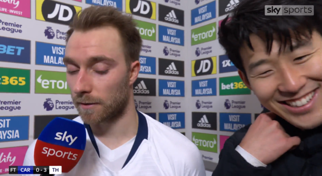 이는 당연히 진지한 내용이 아니었다. 손흥민과 함께 진행된 인터뷰였기에 바로 옆에 서 있던 손흥민이 들으라고 말한 농담이었다. 실제 손흥민도 에릭센의 '나쁜 패스'란 가벼운 장난말에 멋쩍게 목을 긁어 미소를 보였고 에릭센 역시 웃음을 참지 못하며 화기애애한 분위기를 연출했다.
