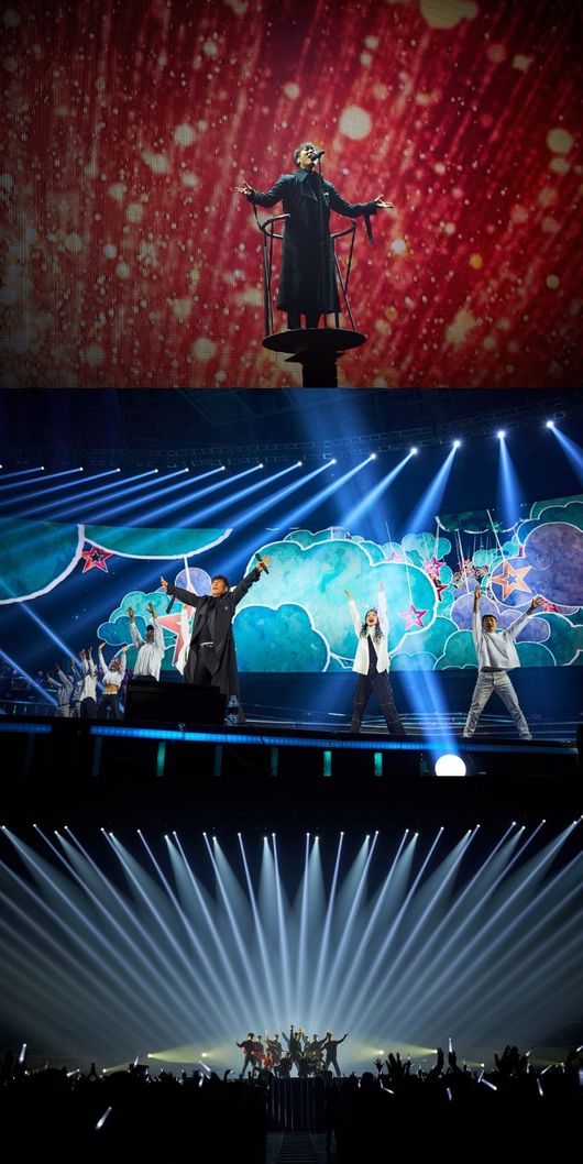 특히, 실내 공연 최장 길이로 기록 될 100미터에 달하는 초대형 파노라마 스크린 위에 펼쳐지는 감각적인 영상과 드라마틱한 연출은 관객들을 환상의 세계로 안내했다. 공연 초반과 후반부에는 천장에 숨겨두었던 50미터 초대형 스카이 브릿지가 내려와 공연장 한가운데에 거대한 무대가 새로 생기는 스케일 큰 연출로 모두를 깜짝 놀라게 하였다.