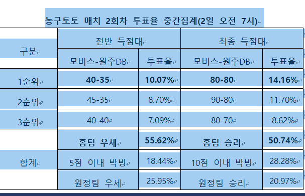 2018-19시즌 KBL 모비스-원주DB전 대상 농구매치 2회차 중간집계 결과