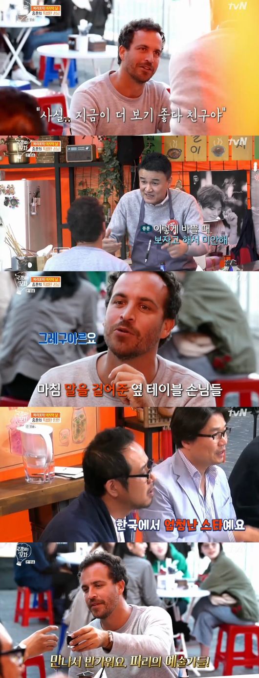 요리에 집중하던 박중훈은 한 손님을 보고 버선발로 뛰어나갔다. 두 사람은 포옹하며 반갑게 인사를 나눴는데 8년 만에 만난 프랑스 친구 그렉이었다. 박중훈은 아빠가 된 친구에게 축하의 인사를 건넸고, 그렉 역시 바쁘게 일하는 박중훈을 보며 "일하는 모습이 보기 좋다. 무엇보다 이렇게 다시 보니까 진짜 좋다"고 활짝 웃었다.