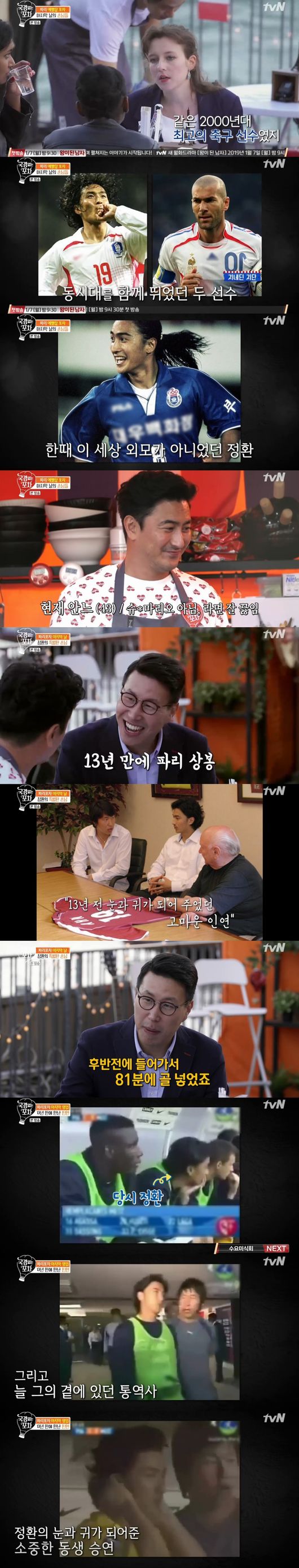 후배 역시 유럽에서 축구 선수로 활약했던 안정환을 폭풍 자랑하며 아직도 그의 기록을 달달 외웠다. 13년 전 꼭 붙어 다녔던 두 사람의 풋풋한 영상이 공개됐고 안정환은 추억에 젖었다. 앞서 프랑스 여자 손님은 친구들에게 안정환이 프랑스로 따지면 지단 같은 유명한 선수였다고 소개한 바 있다.