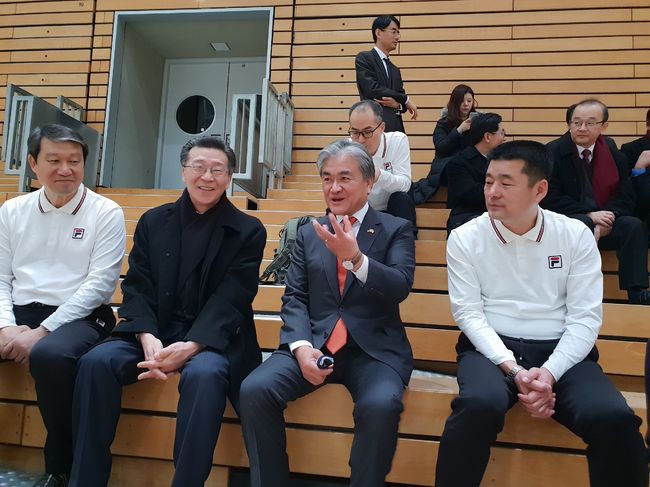 선수 및 코칭스태프와 만남의 시간을 마친 양측 대사는 단일팀의 훈련하는 모습을 스탠드에서 함께 지켜보며 선수단을 응원했다.