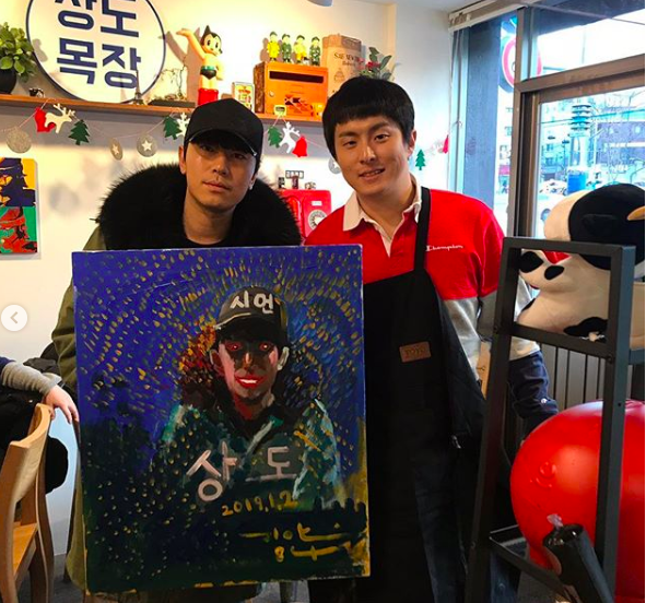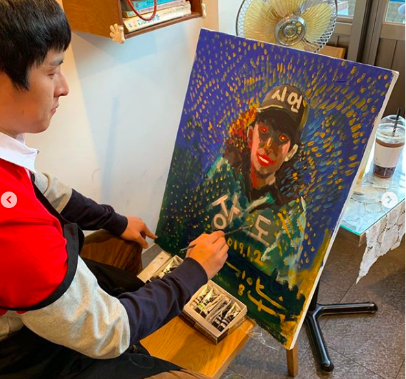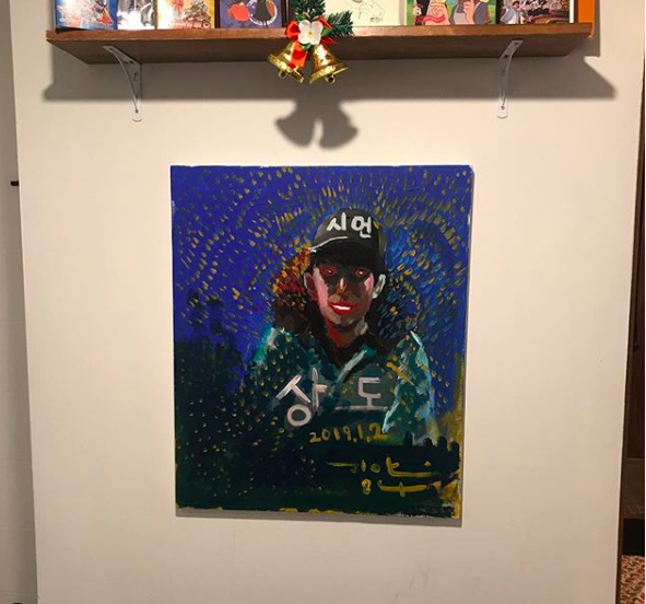 이시언은 3일 자신의 SNS에 기안84가 직접 그려 선물해 준 그림 인증샷을 게재했다. 이시언은 지난해 서울 상도동에 자신의 카페를 오픈한 바. 강렬한 이시언의 자화상이 카페 벽면을 장식했다.
