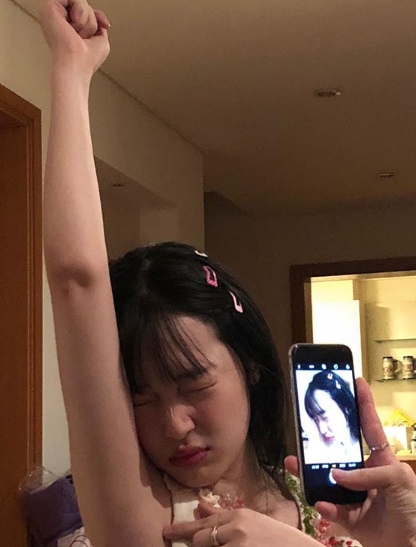 '솔직함의 대명사'인 설리의 파격은 이날도 계속됐다. 설리는 자신의 겨드랑이를 가리키는 포즈를 취하거나 친구들과 바닥에 드러누워서 사진을 찍는 듯 거침없는 매력을 발산했다.