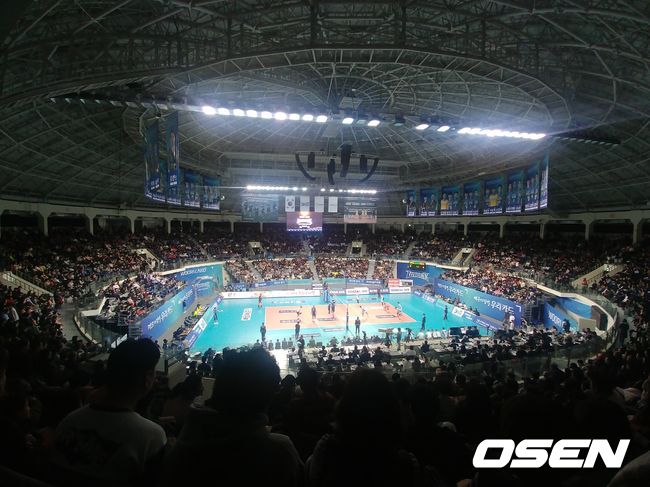 이날 역시 만원 관중을 이뤘다. 3일 전보다 관중은 더욱 늘었다. 이날 공식 집계된 관중은 3972명. 2경기 연속 매진 기록을 펼쳤다. 우리카드 관계자는 "주말이 아닌 평일에 만원 관중을 이룬 것은 거의 처음 있는 일"이라며 "선수들 역시 좀 더 집중력 있는 경기를 할 수 있는 것 같다"고 미소를 지었다.