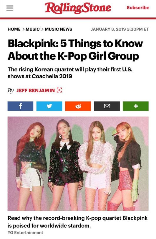 롤링스톤은 오늘(4일) ‘Blackpink: 5 Things to Know About the K-Pop Girl Group (K팝 걸그룹 블랙핑크에 대해 알아야 할 5가지 사실)’이라는 제목의 특집 기사를 보도했다.