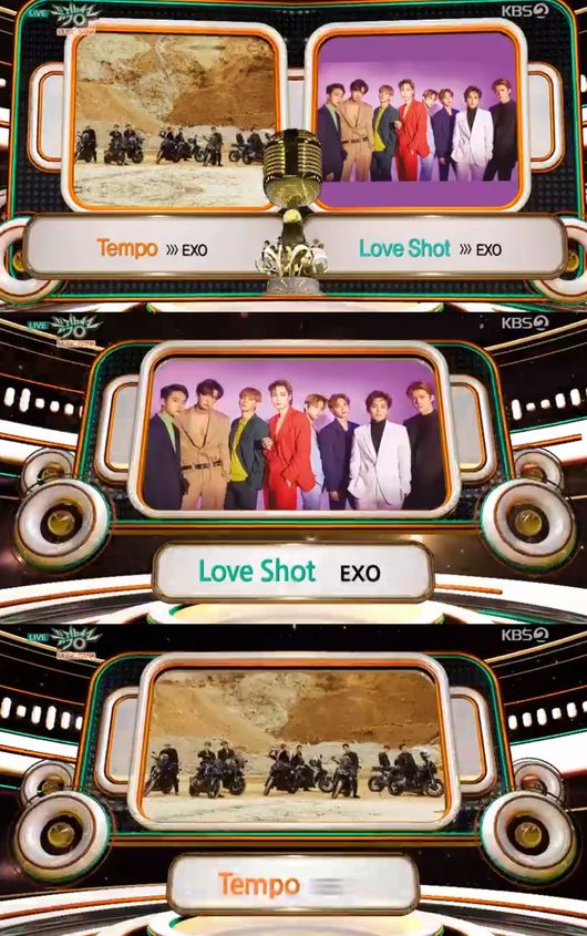 엑소는 4일 방송된 KBS 2TV '뮤직뱅크'에서 '템포(Tempo)'와 '러브 샷(Love Shot)'으로 1위에 올랐다.