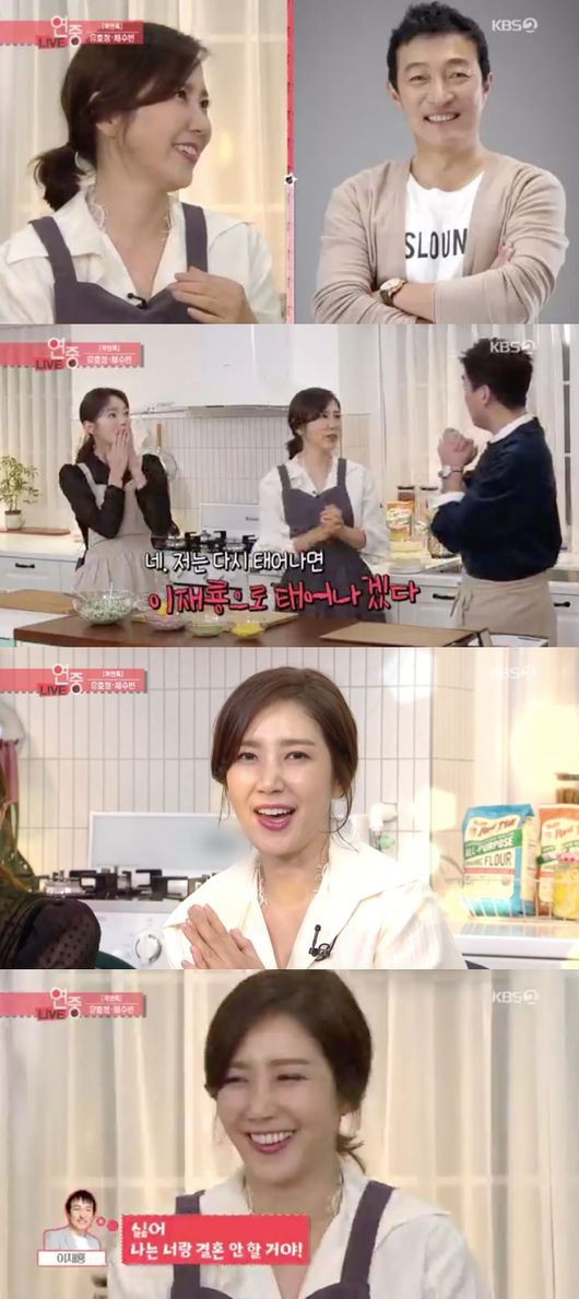 유호정은 4일 오후 방송된 KBS2 ‘연예가중계’의 ‘쿡앤톡’ 코너에서 “다음 생에 태어나면 이재룡 씨와 결혼하겠느냐”는 물음에 예상 밖 대답을 내놓았다.