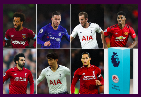 EPL 사무국은 4일(이하 한국시간) 공식 홈페이지를 통해 12월 이달의 선수 후보 7명을 발표했다. 손흥민을 비롯해 7명의 선수가 후보로 공개됐다. 모하메드 살라(리버풀), 해리 케인(토트넘), 에덴 아자르(첼시), 마커스 래쉬포드(맨유), 펠리페 안데르손(웨스트햄), 버질 판 다이크(리버풀)이 포함됐다.