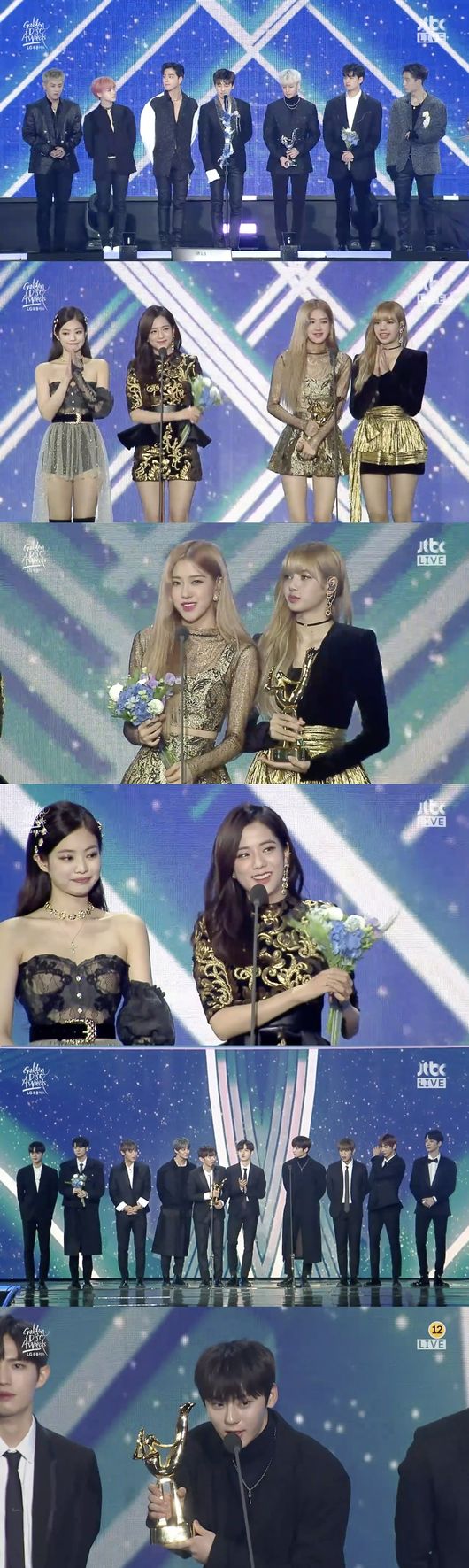 또한 방탄소년단과 워너원, 블랙핑크 역시 각각 2관왕을 차지하며 인기를 입증했다. 먼저 본상과 2019 글로벌 탑텐 베스트 아티스트상을 수상한 방탄소년단은 "음원 음반 모두 사랑해주시는 아미 여러분 덕분에 상을 받게 됐다고 생각한다. 너무 감사하고 사랑한다"며 "좋은 음원들을 열심히 준비하고 있으니까 좋은 음원으로 나오겠다"고 팬들에게 공을 돌렸다.