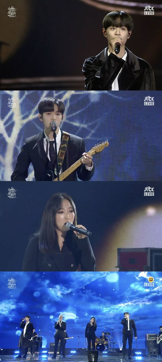 이외에도 이날 시상식에서는 신장암 투병 끝에 지난 27일 세상을 떠난 봄여름가을겨울 전태관의 추모무대도 이어졌다. 워너원의 이대휘가 '사람들은 모두 변하나봐'를 불렀고 김재환은 함춘호와 '언제나 겨울'을, 정인은 '안녕 또 다른 안녕' 무대를 선보였다. 마지막으로 봄여름가을겨울의 김종진과 정인, 이대휘, 김재환은 '브라보 마이 라이프'를 함께 부르며 고인을 추모했다.