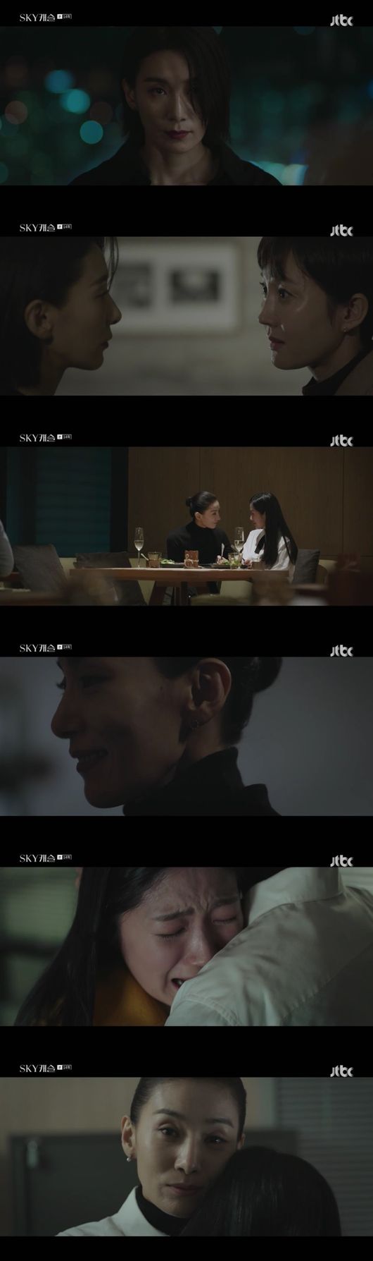 JTBC 금토드라마 ‘SKY 캐슬’(극본 유현미 연출 조현탁) 김주영(김서형 분)은 혜나(김보라 분)의 정체를 알아차린 예서를 다독이며 더더욱 자신을 의지하게 만들었다.