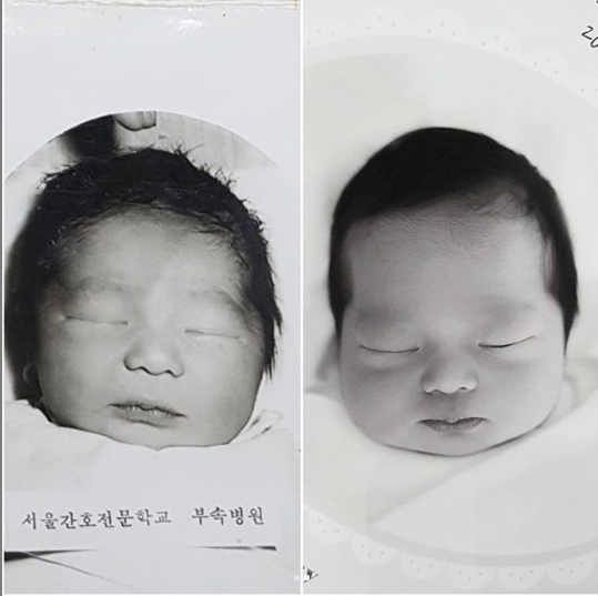 또 다른 사진 역시 아기 시절 한석준과 그의 딸. 갓 태어난 두 사람의 모습이 붕어빵처럼 똑닮아 있다. 자신과 딸의 닮은 모습을 비교하며 부모님에게 감사 인사를 전하는 한석준의 '딸바보' 면모가 돋보인다.