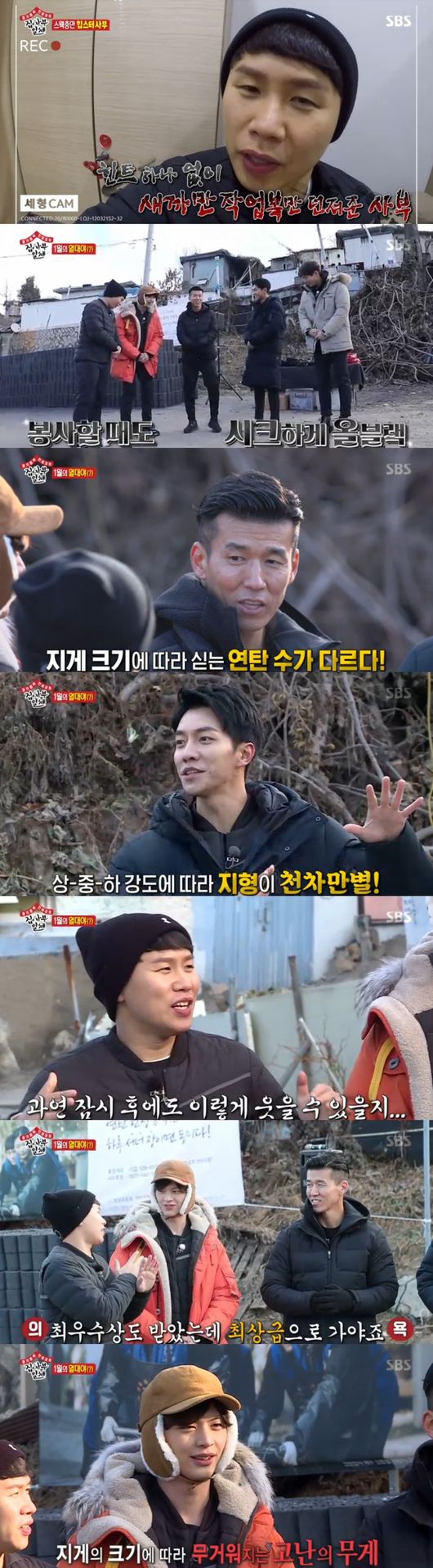 연탄은 3천장이 준비되어 있었다. 한 명씩 6백장이 맡아진 상황. 션은 "우리의 땀으로 대한민국 온도를 올리지, 온도1도 올리기"라고 외치며 봉사에도 코스가 있다고 했다. 난이도 상중하 높이에 따라 연탄 배송요금이 추가되지만 우리가 직접 나르면 배송비를 절약할 수 있다고 전했다. 양세형은 "오늘 할 것 제대로 할 것"이라 했고, 션은 "반팔입고 가게 될 것"이라고 말해 모두 긴장하게 했다.
