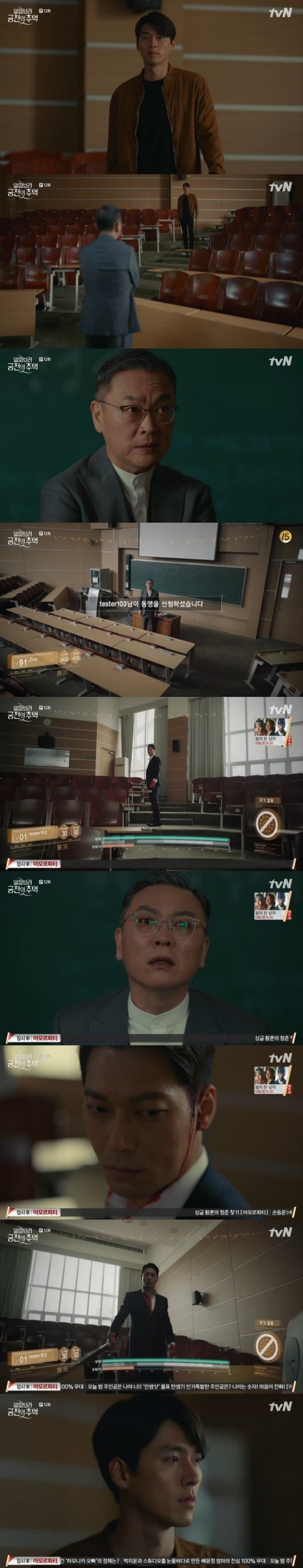 6일 오후 방송된 tvN '알함브라 궁전의 추억'에서는 유진우(현빈 분)가 차병준(김의성 분) 교수을 찾아가 게임 속에서 동맹을 맺는 모습이 그려졌다.
