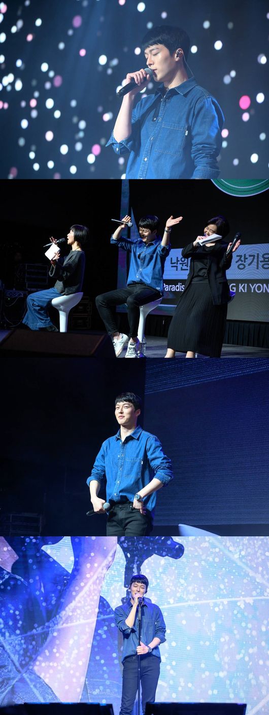 이날 장기용은 드라마 '이리와 안아줘'의 OST '낙원의 나무'를 부르며 등장했다. 음원이 아닌 라이브로 선보인 것이 처음인 만큼 팬들도 엄청난 환호성으로 이에 호응했다. 감미로운 중저음의 목소리와 콘서트를 방불케 하는 가창력 또한 팬들을 열광케 했다.