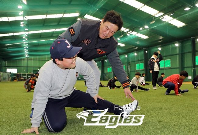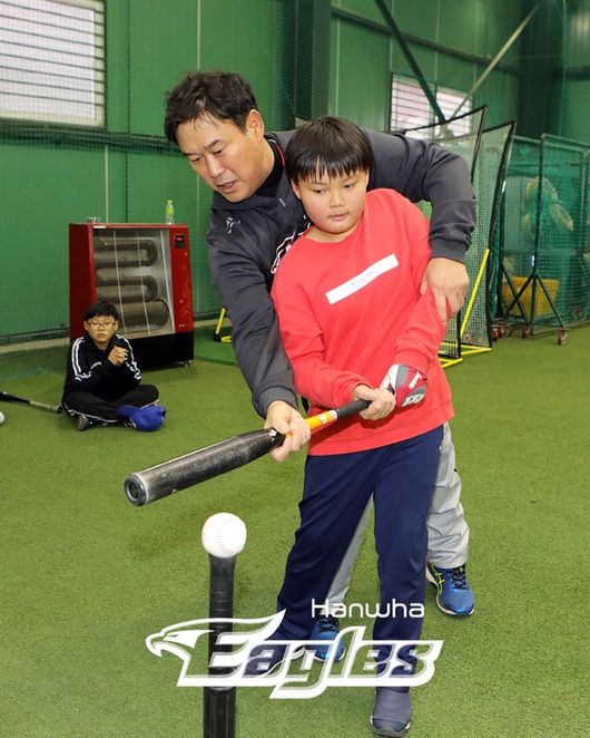 올해로 10살이 된 참가 학생은 “장종훈 코치님이 누군지 안다. 부모님에게 코치님에 대해 많은 이야기를 들었다. 전설의 홈런 타자셨다”고 또박또박 말했다. 올해 초등학교에 입학한 1학년 학생은 “구단 홈페이지를 통해 어떤 분인지 알고 있다. 코치님 같은 홈런왕이 되고 싶다”며 장종훈 수석의 지도에 눈빛을 반짝였다.