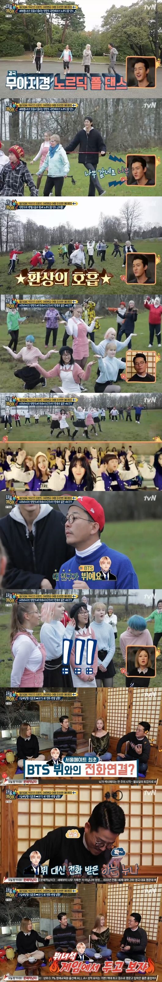 김준호는 뷔와 친분을 인증하기 위해 전화를 걸었지만 '연결이 되지 않는다'는 안내 멘트가 흘러나왔다. 이에 김준호는 "갑자기 귀가 빨개진다. 뷔 이 녀석 게임에서 널 쏘겠다. 나중에 톡으로 버튼 잘못 눌러서 전화했다고 할 거다"며 웃었다.