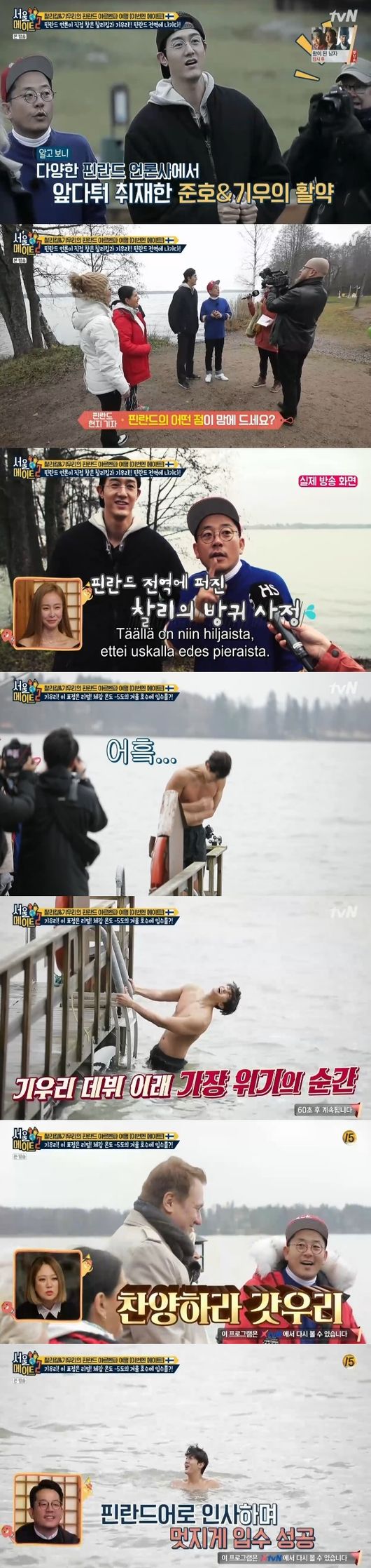 핀란드인들의 겨울 호수 수영을 체험하기 위해 이기우가 뛰어들었지만 금방 나왔다. 제작진은 "지금 드론을 띄웠다"고 했지만, 이기우는 "드론이고 뭐고 지금 물이 너무 차갑다"며 고통스러워했다. 그럼에도 이기우는 차가운 겨울 호수에 입수해 수영까지 완수했다.