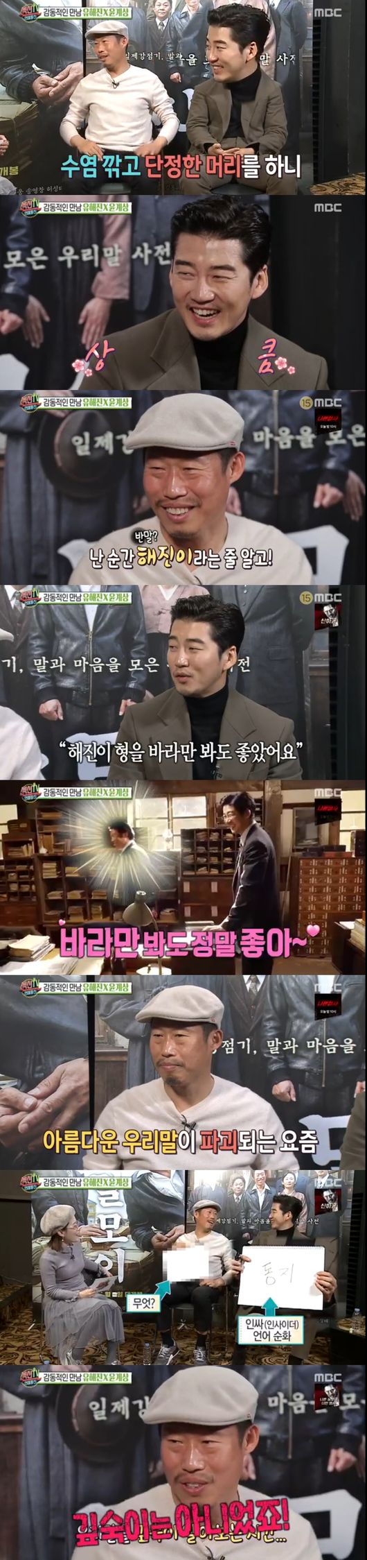 두 사람은 영화 임하며 사명감을 느꼈다고 했다. 유해진은 "우리말과 정신을 지키는 것이 또 다른 독립운동이겠구나 느꼈다"며 남다른 감회를 전했다. 이에 아름다운 우리말을 파괴되는 하는 신조어 '인싸, 아싸'를 아름다운 말로 바꾸자고 하자, 유해진은 "인싸는 김밥의 시금치, 아싸는 김밥의 김"이라며 기발한 상상력으로 초토화 시켰다. 윤계상은 "아름다운 우리말로 '동지'를 추천한다, 아름다운 우리말 지키자"며 두 사람은 한글사랑을 보였다. 팔색조 배우들의 연기 변신이 기대감을 안겼다.