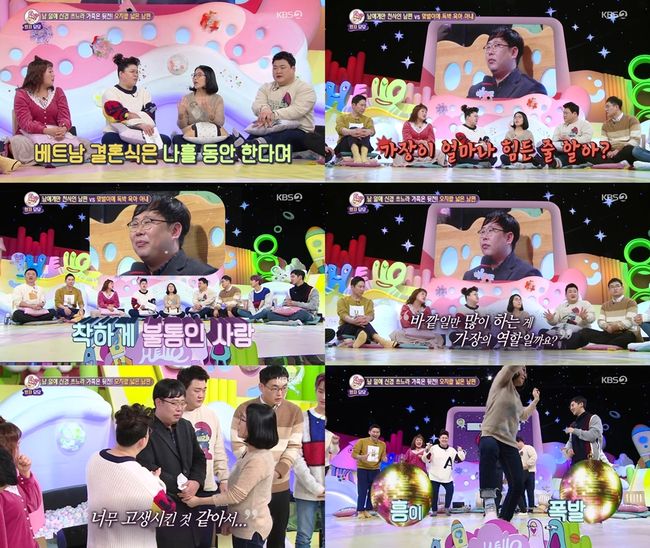 남편은 아내에게 “앞으로 노력해서 힘들지 않게 해줄게”, “사랑해”라 했고, 이후 고민주인공과 남편은 출연진들과 함께 신나는 음악에 맞춰 흥겹게 춤을 추는 훈훈한 모습으로 사연은 마무리되었다.