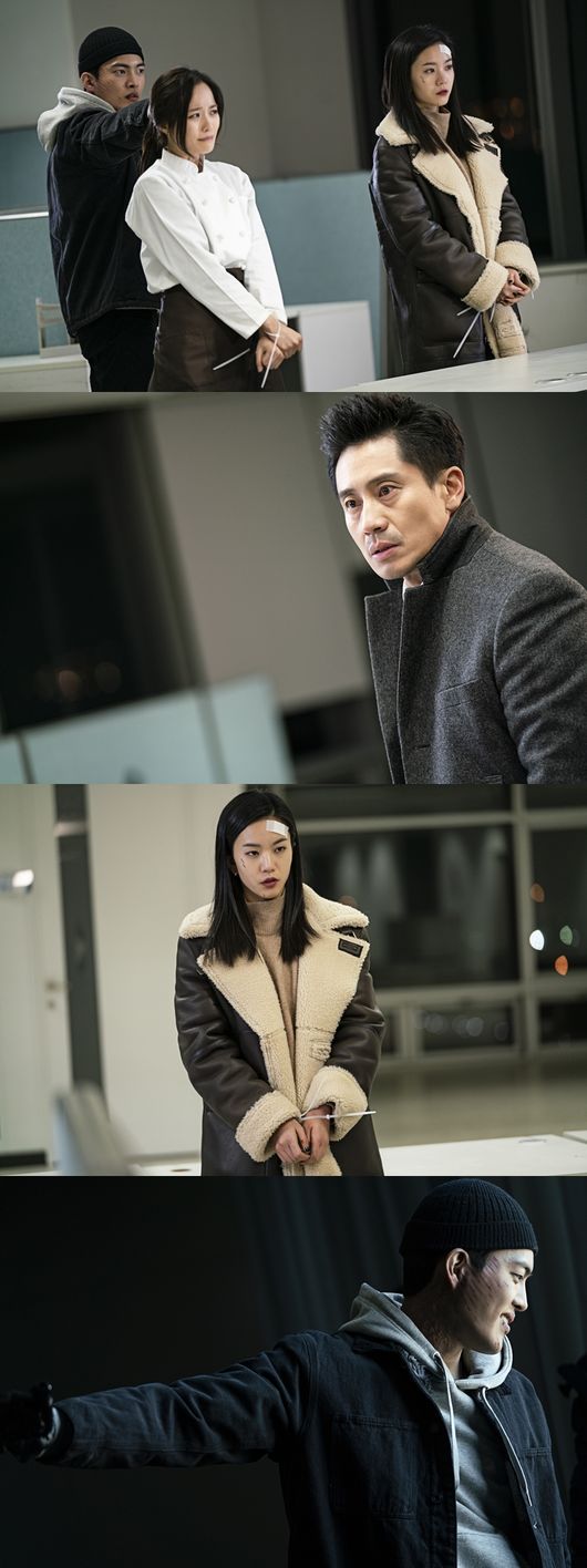먼저, 가장 눈길을 끌고 있는 것은 신하균 앞에서 이설과 배윤경을 향해 총구를 겨누고 있는 김건우의 모습이다. 몇 차례 죽음의 위기를 벗어난 김건우는 한층 더 업그레이드 된 악의 기운을 뿜어내고 있는 동시에 신하균의 분노를 더욱 자극하는 특유의 여유만만한 듯한 표정으로 시선을 압도하고 있기 때문. 이설과 배윤경의 손을 움직일 수 없도록 묶어두고, 신하균을 마주본 김건우는 한 치의 흔들림도 없이 오히려 미소를 짓고 있는 상상 이상의 사악함으로 무장해 두 여자의 목숨을 위협하고 있는 모습은 역대급 소름을 유발하기에 충분하다.