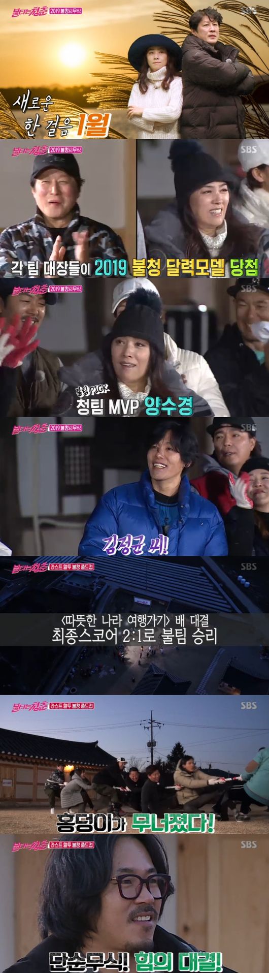 대망의 마지막 승부는 줄다리기였다. 서로가 서로를 견제하며 진검승부가 벌어진 것. 하지만 믿었던 박재홍이 넘어지면서 불타는팀이 밀렸다. 하지만 다시 국대의 힘을 발휘, 다시 비등비등해진 끝에 청춘팀이 넘어지며 무너졌다. 결국 2대 1로 불타는팀이 승리했다. 그리곤 각각 MVP로 김정균, 양수경이 뽑히며 문경의 특산물인 사과를 선물받았다. 이어 '2019 불청 달력' 모델로 발탁됐다.