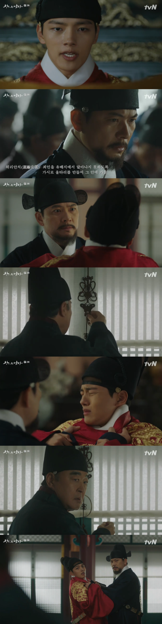 소식을 들은 이규는 하선에게 날라차기를 시도했다. 하선은 이리저리 피했고 이규는 물건을 던지며 투닥거렸다. 급기야 곤룡포를 입은 하선에게 헤드락을 걸었다. 하선은 “누군가 청하면 윤허를 허락하라 하신게 누굽니까. 부원군을 구명해줘야 합니다. 중전마마께 그리 약조했다”고 알렸다.