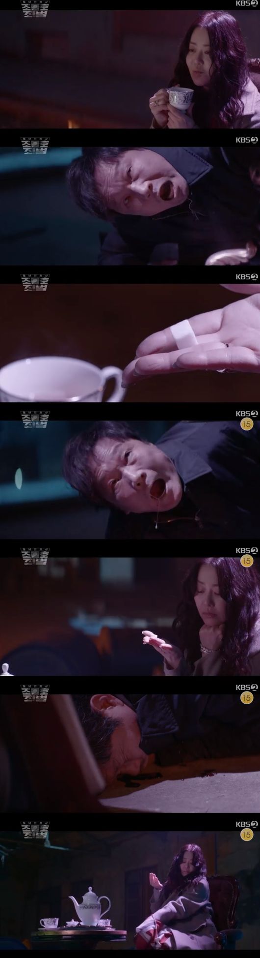 이때 정건은 자경이 준 차를 마시고 배를 부여잡고 쓰러졌다.