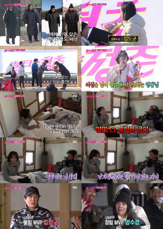 청춘들은 ‘따뜻한 나라 여행’을 걸고 불팀과 청팀으로 나눠 게임도 즐겼다. 김도균이 열연한 ‘몸으로 말해요’ 게임에 이어 아재 개그 김정균과 한정수의 신경전이 눈길을 끈 ‘난센스게임’,힘대결 ‘줄다리기’까지 흡사 불청 오락관 같은 분위기로 흥겨움을 선사했다. 이어 오랜만에 아재 개그로 재미를 준 김정균이 불팀의 MVP로 뽑히고, 청팀은 양수경이 MVP로 선정돼 훈훈한 마무리를 장식했다.