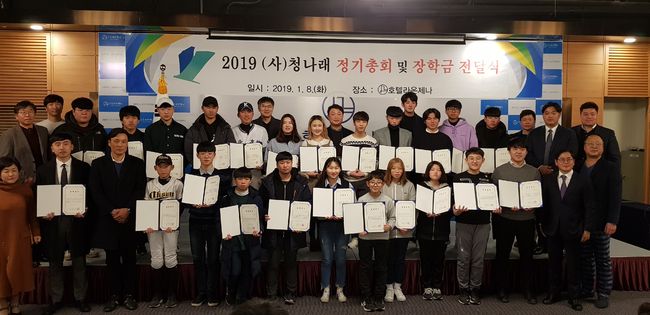 청소년들에게 장학금과 자립 프로그램을 지원하는 단체인 '청나래'(회장 박관식)는 지난 8일 대구 수성구 호텔라온제나에서 장학금 전달식을 가졌다. 이들의 지난 시즌 홈런 적립금과 청나래 회원들의 기부금을 모아 대구지역 야구 꿈나무를 비롯한 청소년 32명에게 장학금을 전달했다.
