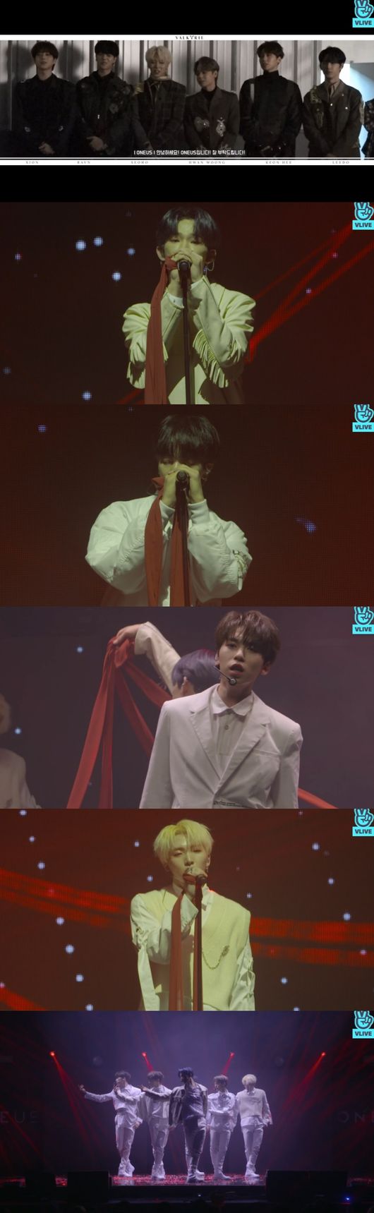 9일 방송된 V라이브 '원어스(ONEUS) Debut Concert-MASTERPIECE’ VUSDL RMFUWUtEK.'가 그려졌다.