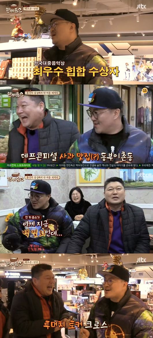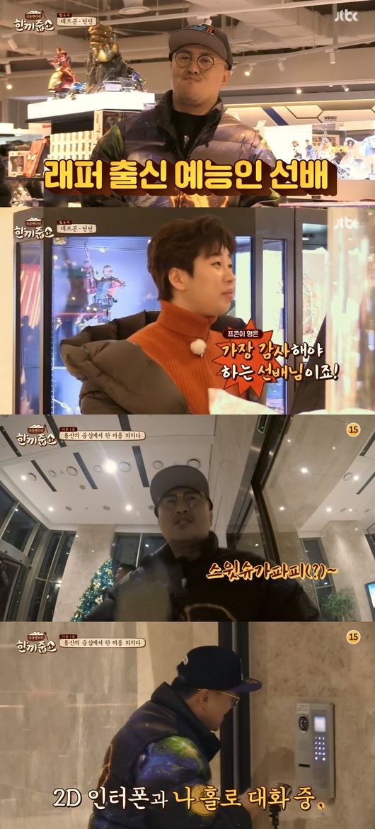 9일 방송된 JTBC '한끼줍쇼'에서는 래퍼 데프콘, 딘딘이 한끼 동무로 출연했다. 두 사람은 동부이촌동에서 한끼에 도전하게 됐다.
