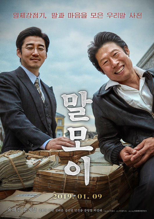 우리말 사용이 금지된 1940년대 까막눈 판수(유해진 분)가 조선어학회 대표 정환(윤계상 분)을 만나 사전을 만들기 위해 비밀리에 전국의 우리말과 마음까지 모으는 이야기를 담은 영화 '말모이'가 개봉 첫날인 어제(9일) 12만 2461명의 관객을 동원해 전체 박스오피스 1위에 올랐다.