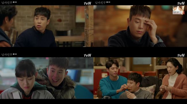 지난 10일 방송된 '남자친구'에서 김진혁(박보검 분)과 조혜인(전소니 분)은 이대찬(김주헌 분)의 가게에서 저녁 시간을 보냈다. 조혜인의 가방을 떨어뜨리며 등장한 김진명은 이대찬과 투닥거리며 '현실 친구 케미'를 뽐내 시청자들에게 미소를 선사했다. "우리가 이런 사이라 이거지"라며 능청스러운 모습 가득한 생활 연기까지 소화, 안방의 시선을 집중시켰다.