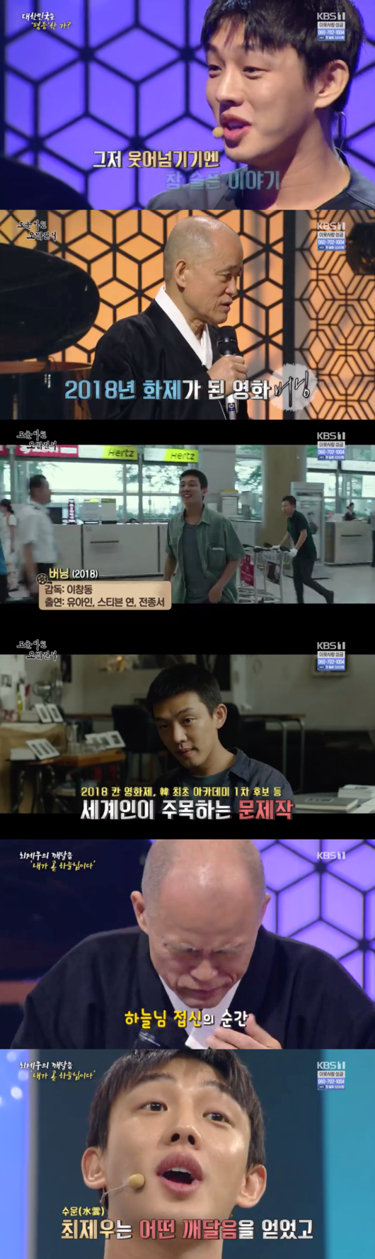 도올은 “우리나라 젊은이들에게 개벽 의지가 부족하다. 사실 불평등하지 않다. 옛날에 비하면 이렇게 평등한 사회가 없다. 불평등은 사실 딱 하나다. 경제적 불평등이다. 우리사회의 경제적 양극화 현상에 젊은이들이 신음하고 있는 거다”며 영화 '버닝' 속 캐릭터처럼 평생 번 돈으로 아프리카 여행을 다니는 것이 아니라 각성을 해야 한다고 밝힌 바.