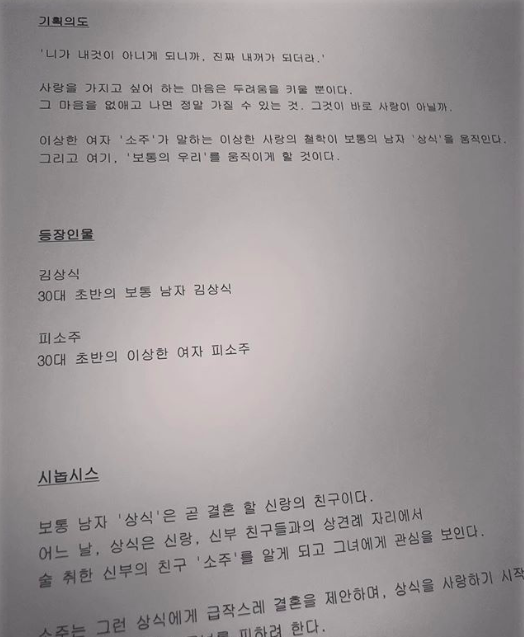 구혜선은 12일 자신의 인스타그램에 "‘소주의 상식’ 소설 작업 중"이라는 글과 함께 기획의도와 시놉시스 일부를 공개했다.