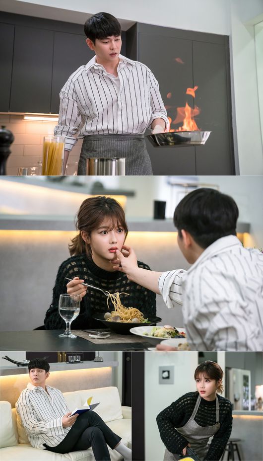 그런 가운데 오솔의 마음을 훔치기 위해 유혹 작전(?)에 나선 선결의 모습이 공개됐다. 먼저 오솔을 위해 앞치마를 두르고 ‘요섹남’으로 변신한 모습이 시선을 사로잡는다. 오솔의 시선을 의식한 듯, 셔츠 소매를 걷어 올리고 화려한 ‘불 쇼’까지 선보이는 치밀함도 놓치지 않는다. 하지만 오솔은 하루아침 달라진 선결의 모습이 어색하고 당황스럽다. 입가를 닦아주는 다정한 손길 한 번에 ‘심쿵’한 듯 얼어버린 오솔의 놀란 표정도 흥미를 유발한다.