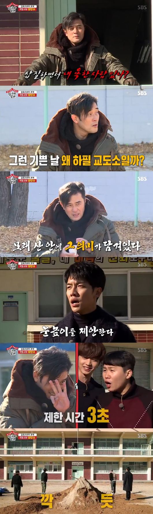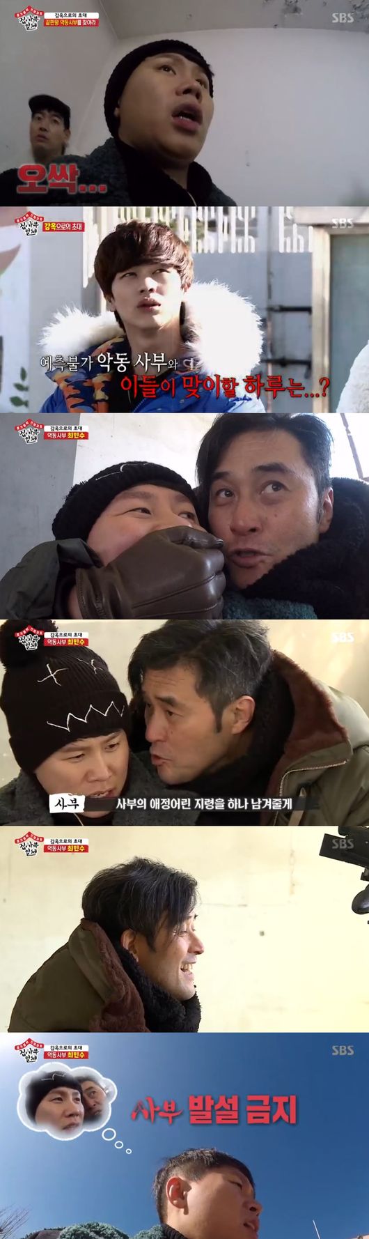 네 사람은 사부를 찾기위해 감옥 안을 살폈다. 이때, 양세형이 먼저 사부를 발견했다. 바로 최민수였다.