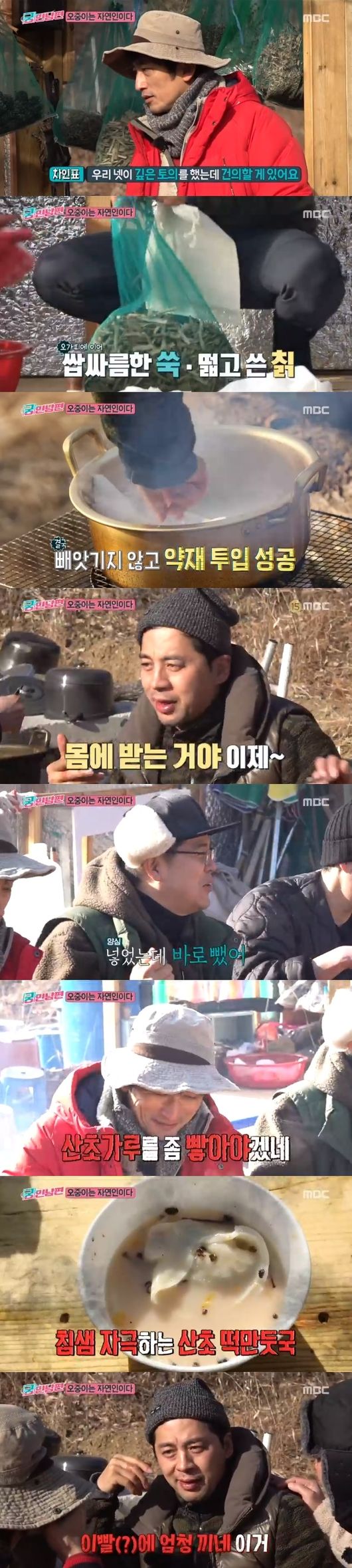 권오중은 아침으로 '보약 떡만둣국'을 제안했고, 차인표와 김용만은 약초를 거부했다. 차인표는 "우리 넷이 깊은 토의를 했는데 건의할 게 있다"고 했지만, 권오중은 "받아주지 않겠다. 약초를 넣지 말라는 것에 반대한다"고 했다.