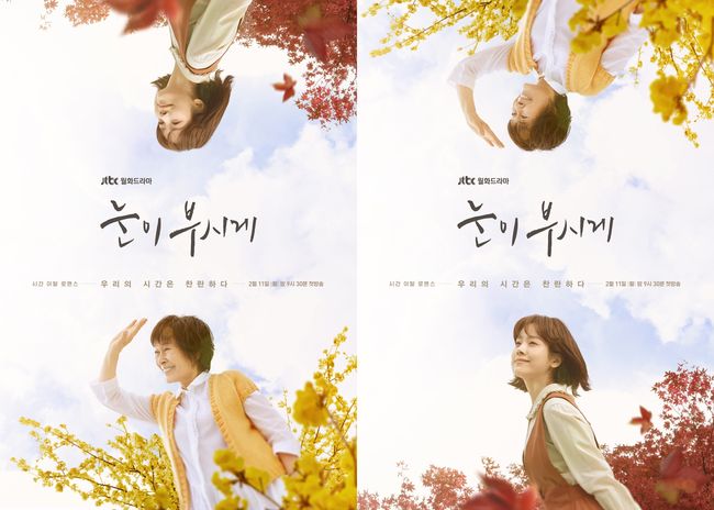 ‘일단 뜨겁게 청소하라’ 후속으로 오는 2월 11일 첫 방송 되는 JTBC 새 월화드라마 ‘눈이 부시게’(연출 김석윤, 극본 이남규·김수진, 제작 드라마하우스)가 14일, 김혜자와 한지민의 찬란한 시간을 포착한 2차 티저 포스터를 공개해 기대를 고조시키고 있다.