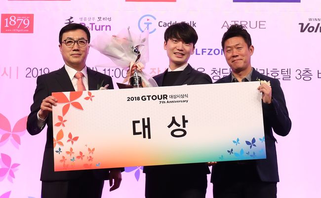 최민욱은 14일 오전 11시 서울 청담 리베라호텔에서 열린 제7회 2018 GTOUR 대상시상식에서 대상포인트와 상금왕을 휩쓸어 2018 GTOUR 최고 선수로 이름을 올렸다.