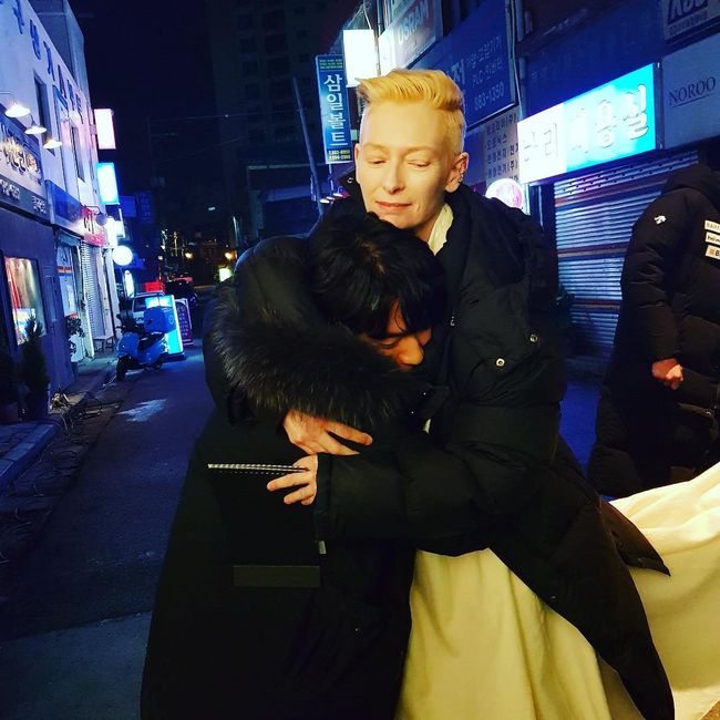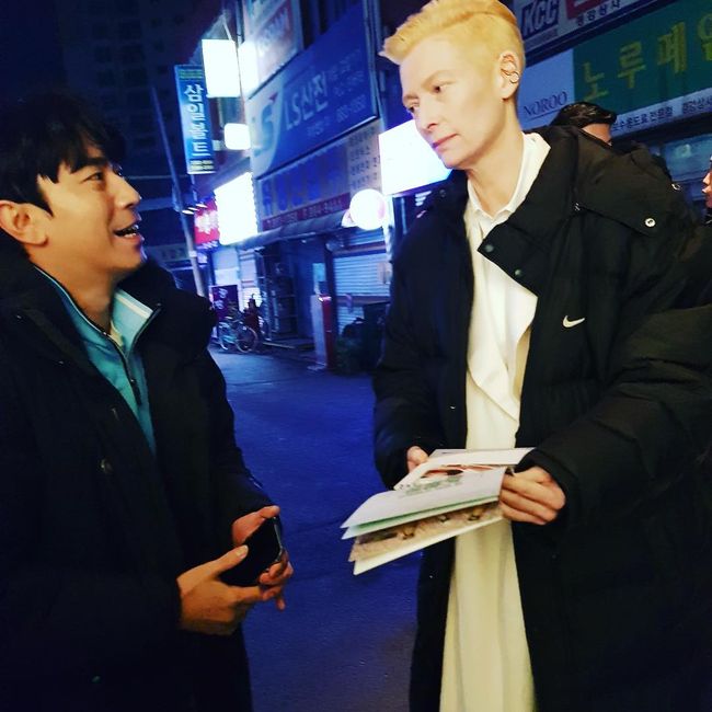 배우 이시언이 할리우드 배우 틸다 스윈튼과의 인증샷을 공개했다.