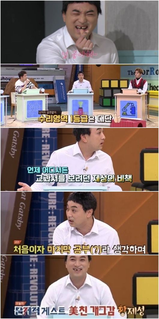 한편 황제성은 이날 이 같은 반전 스펙에 이어 문제를 풀기 위한 남다른 불꽃 열정으로 스튜디오를 웃음바다로 만들었다.
