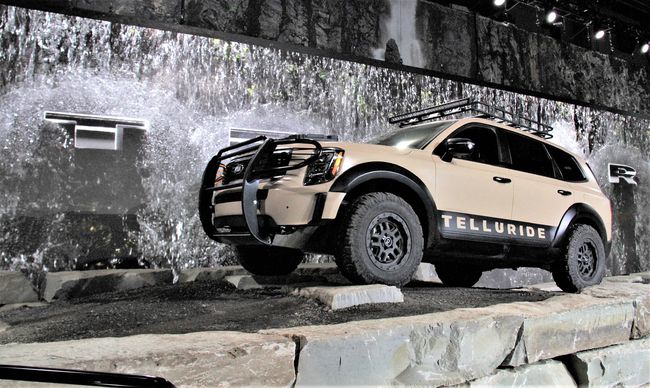 기아자동차가 북미 전용 대형 SUV '텔루라이드'를 처음으로 공개했다. 역동적인 외관에 야성미가 물씬 풍기는 아웃도어 SUV의 형태를 띠고 있다. 가솔린 3.8엔진을 장착해 최대 출력이 295마력에 이른다.