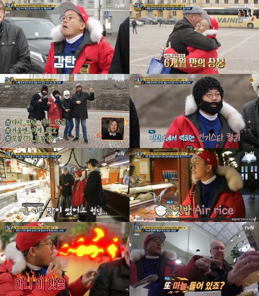 처음 접하는 연어 수프와 순록 샌드위치도 맛있게 먹은 김준호는 카이가 직접 만들어 온 핀란드 디저트 맴미의 매운맛에 동공이 확장돼 폭소를 불러일으켰다. 이는 카이가 한국에 여행 왔을 당시 그에게 속아 생마늘 쌈을 먹었던 것에 대한 복수를 위해 마늘을 넣었기 때문. 시트콤 같은 이들의 모습이 꿀잼을 안겼다.